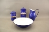 297. Kanna, tvättfat och flaskor 2 st i emaljerad plåt