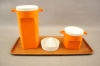 423. Kannor Gustavsberg 2 st och bricka i teak
