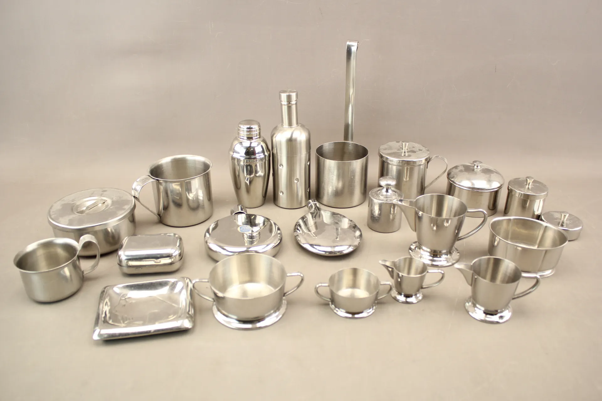 350. Kannor, mått, skålar, mm i rostfritt