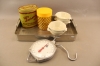 452. Kantin, burkar 2 st, skålar 5 st och våg