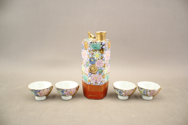 337. Karaff och koppar 4 st med asiatiskt motiv