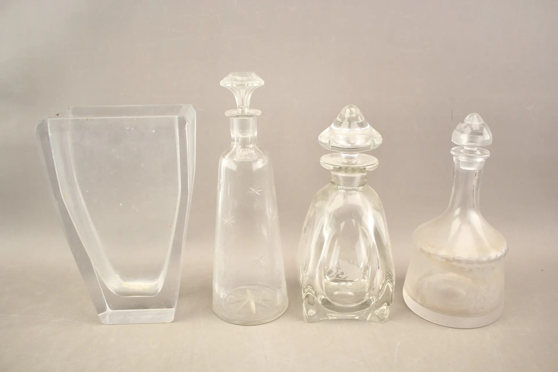 88. Karaffer 3 st och vas bla Skruf