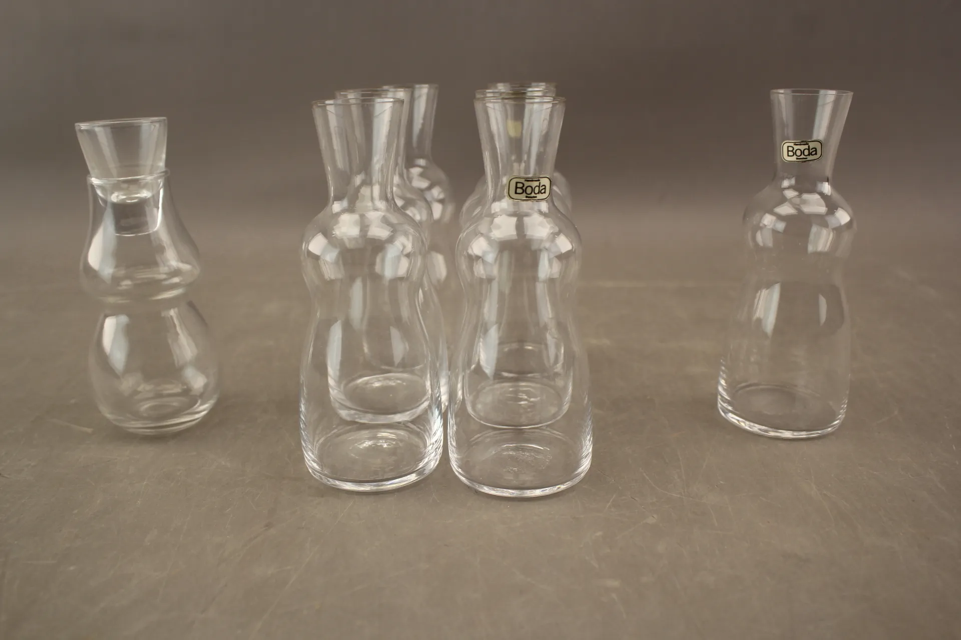 82. Karaffer 8 st bla Boda "Jungfru" Signe Persson-Melin