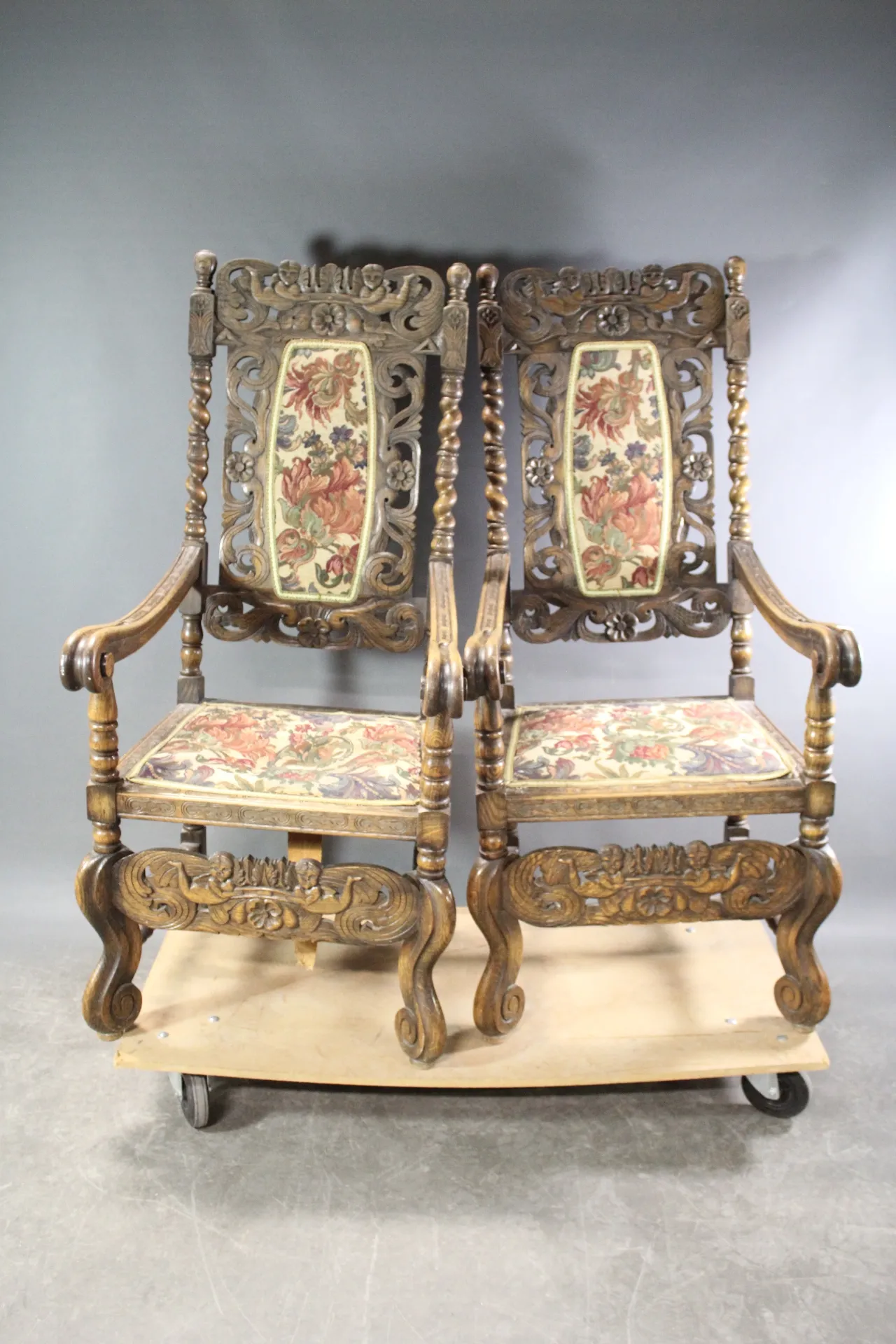 244. Karmstolar i snidad ek, barockstil 1 par