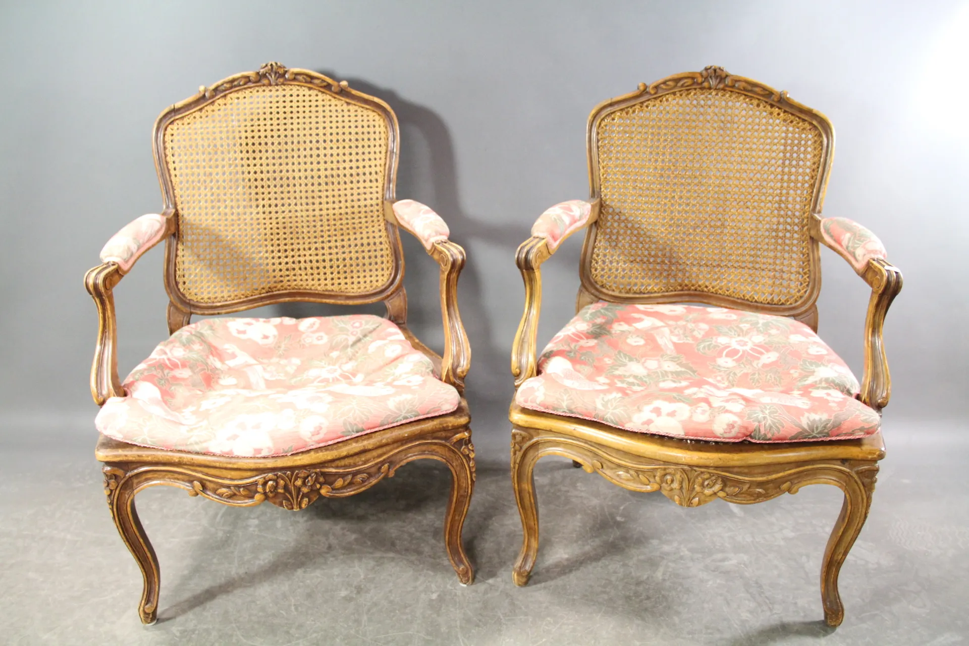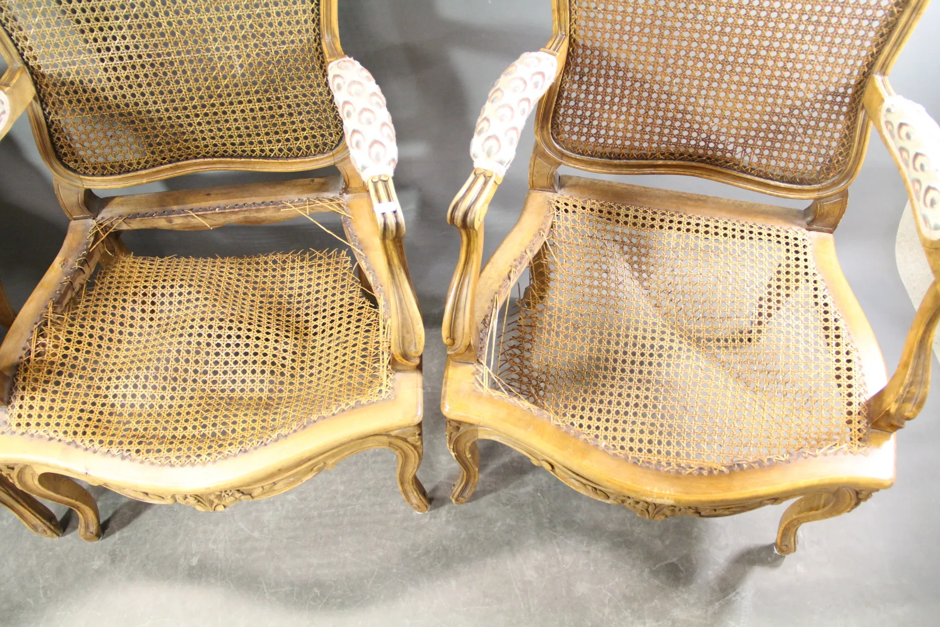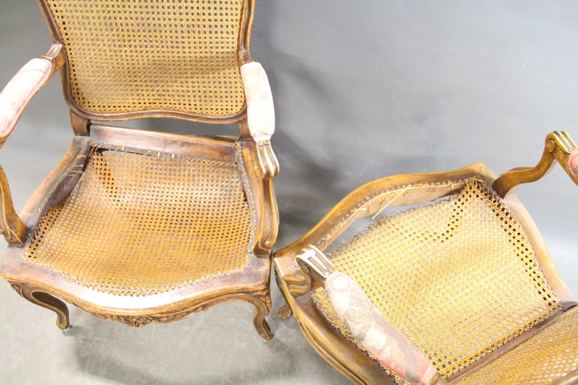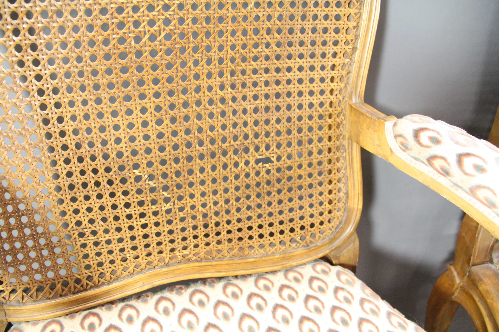 306. Karmstolar i trä och rotting rokokostil 5 st