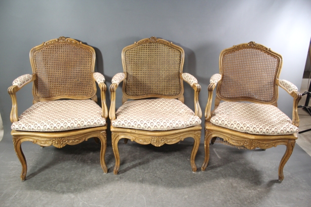 306. Karmstolar i trä och rotting rokokostil 5 st