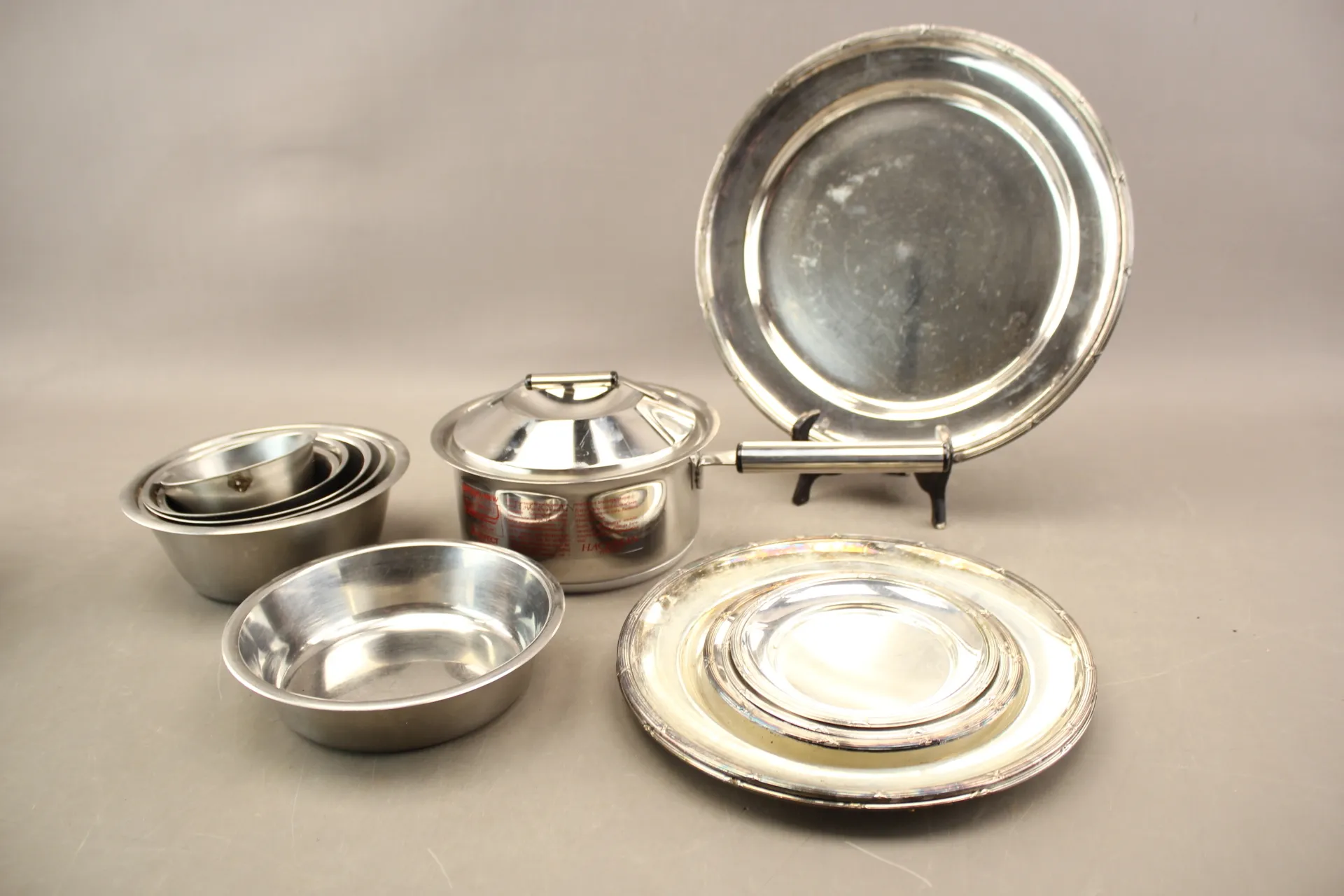 239. Kastrull Hackman, bunkar i rostfritt och brickor