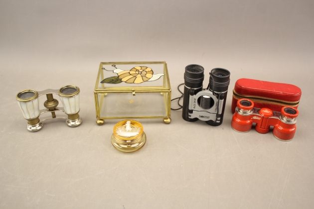 386. Kikare 3 st, skrin och dosa