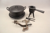 461. Kittel, kultång, kastrull i gjutjärn och äppelsvarv