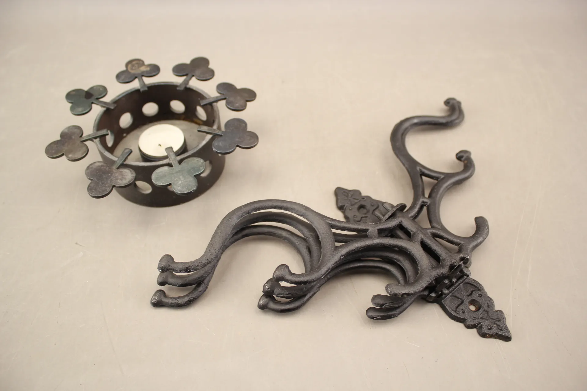 119. Klädhängare och ljusstake i smide bla Bertil Vallien Boda