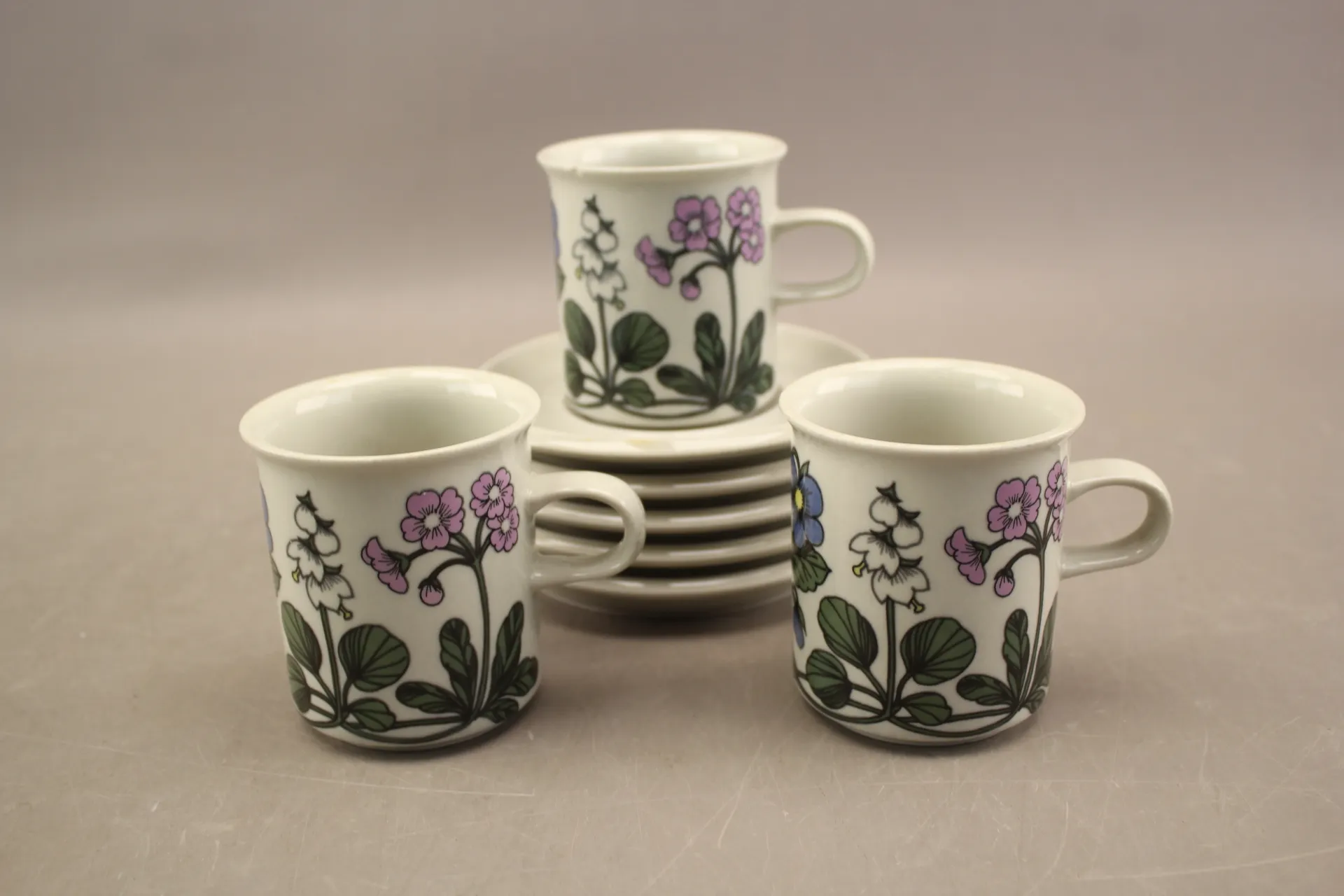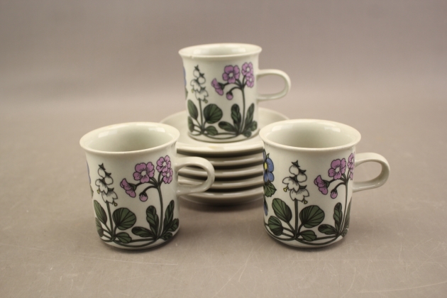 135. Koppar med fat Arabia "Flora" Esteri Tomula 8 delar