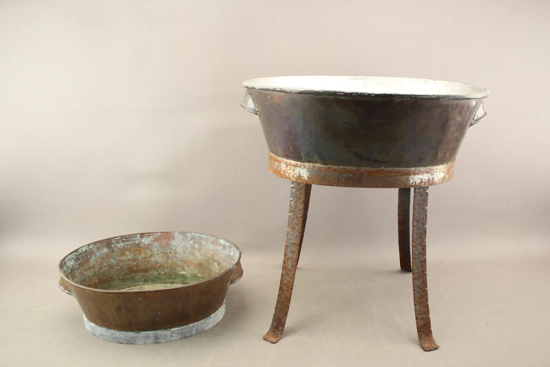 311. Kopparbaljor 2 st varav den ena på benställning