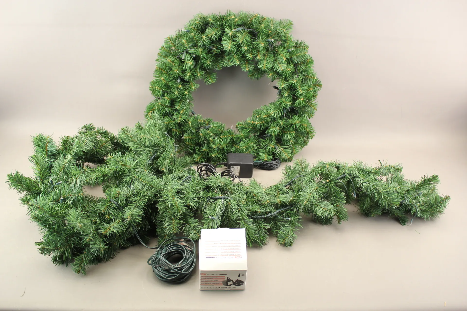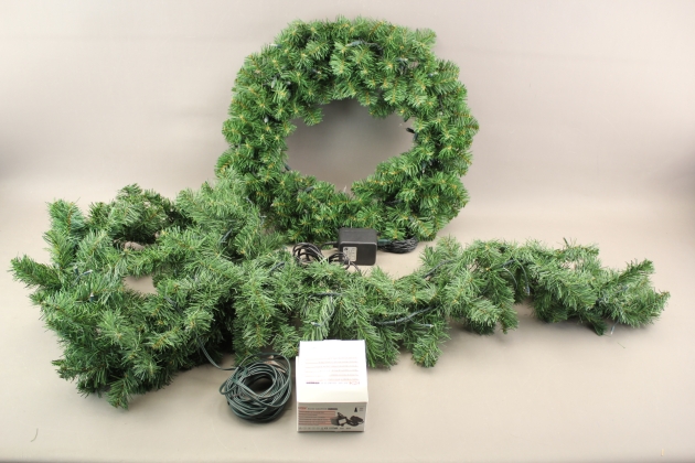 385. Krans och dekorationsslinga, båda med belysning