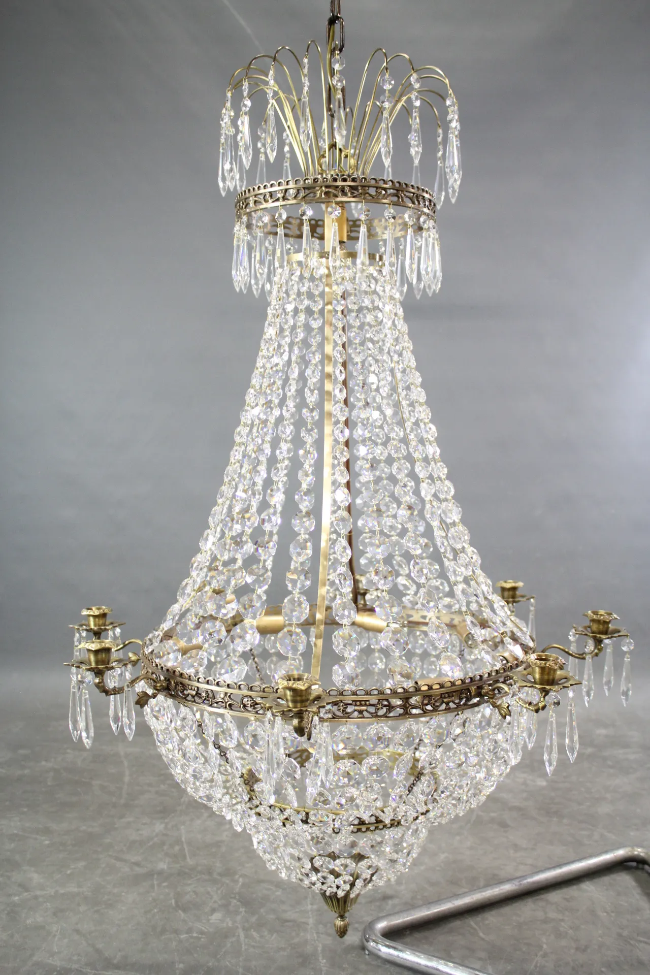 302. Kristallkrona med kristall slipade prismor och nydragen el