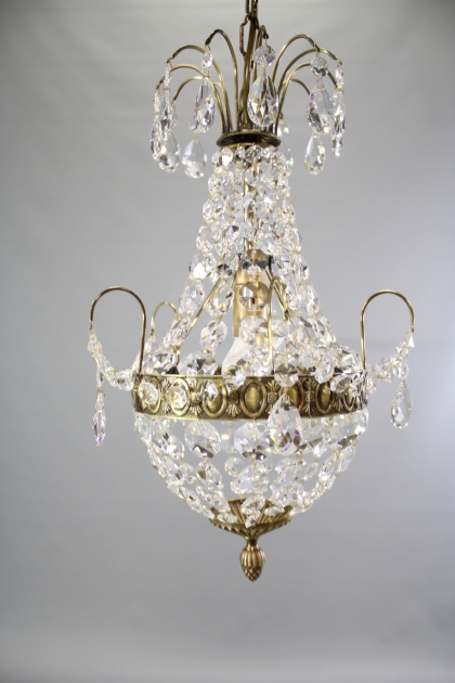 212. Kristallkrona med slipade prismor och nydragen el Empirestil