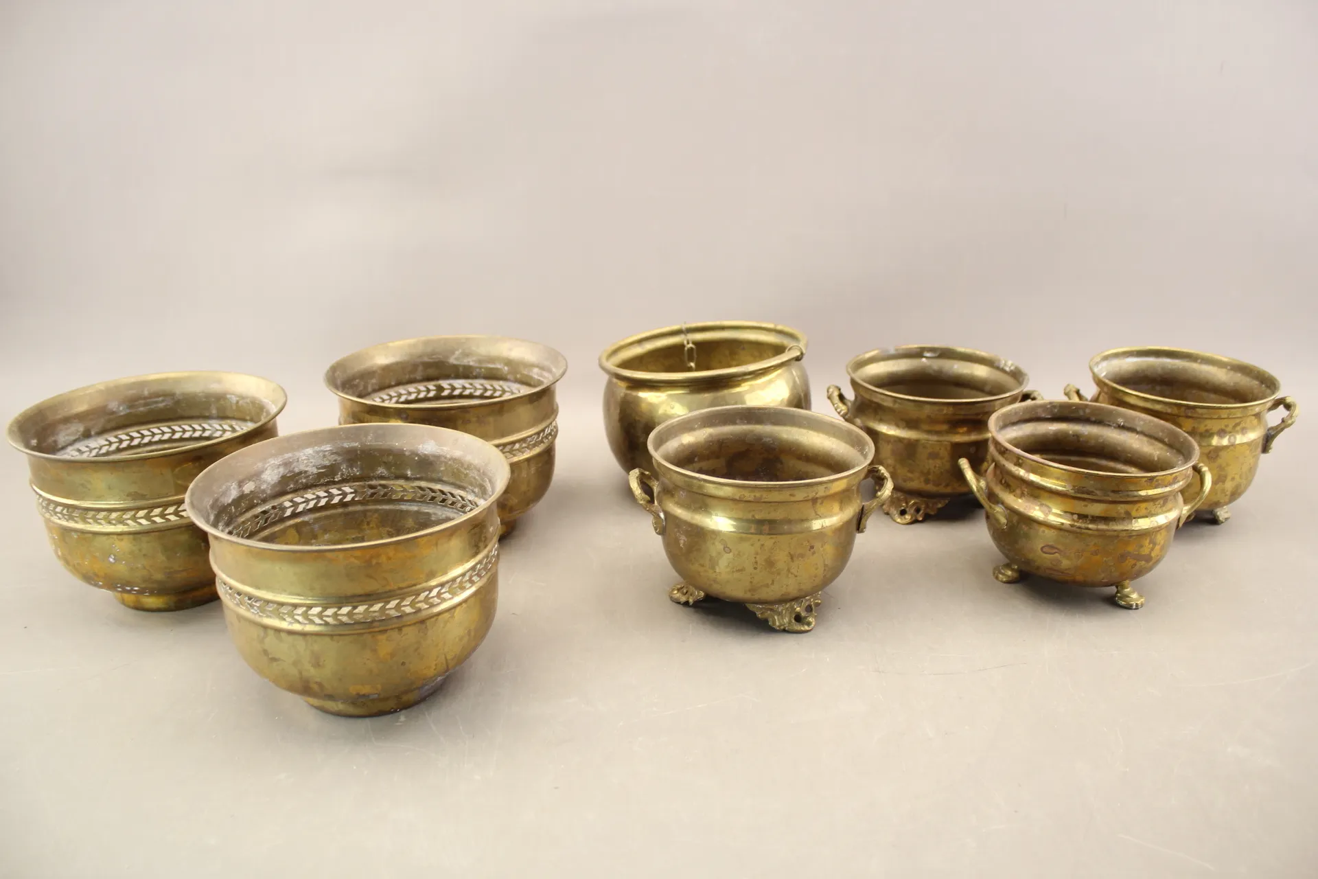 363. Krukor i mässing 8 st