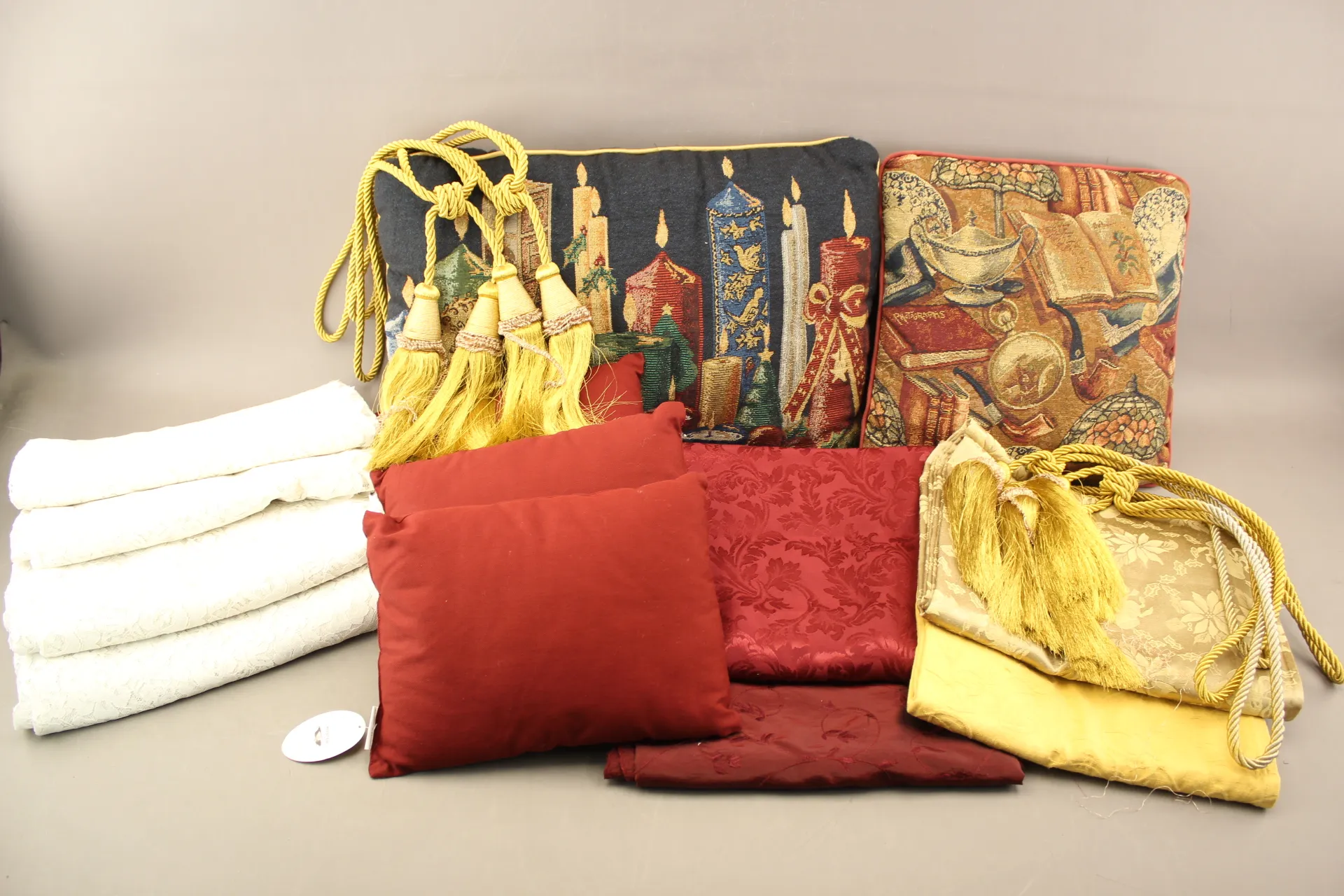 539. Kuddar 5 st, tassels och diverse linne
