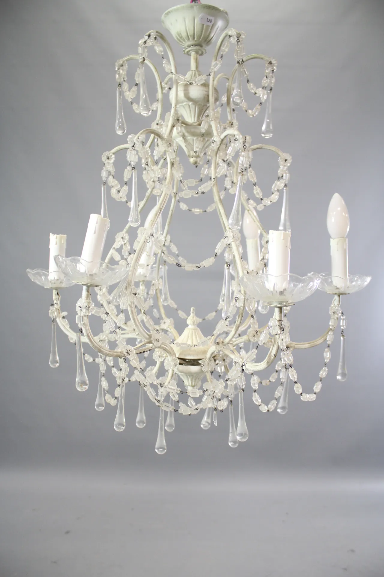 126. Ljuskrona i metall med prismor