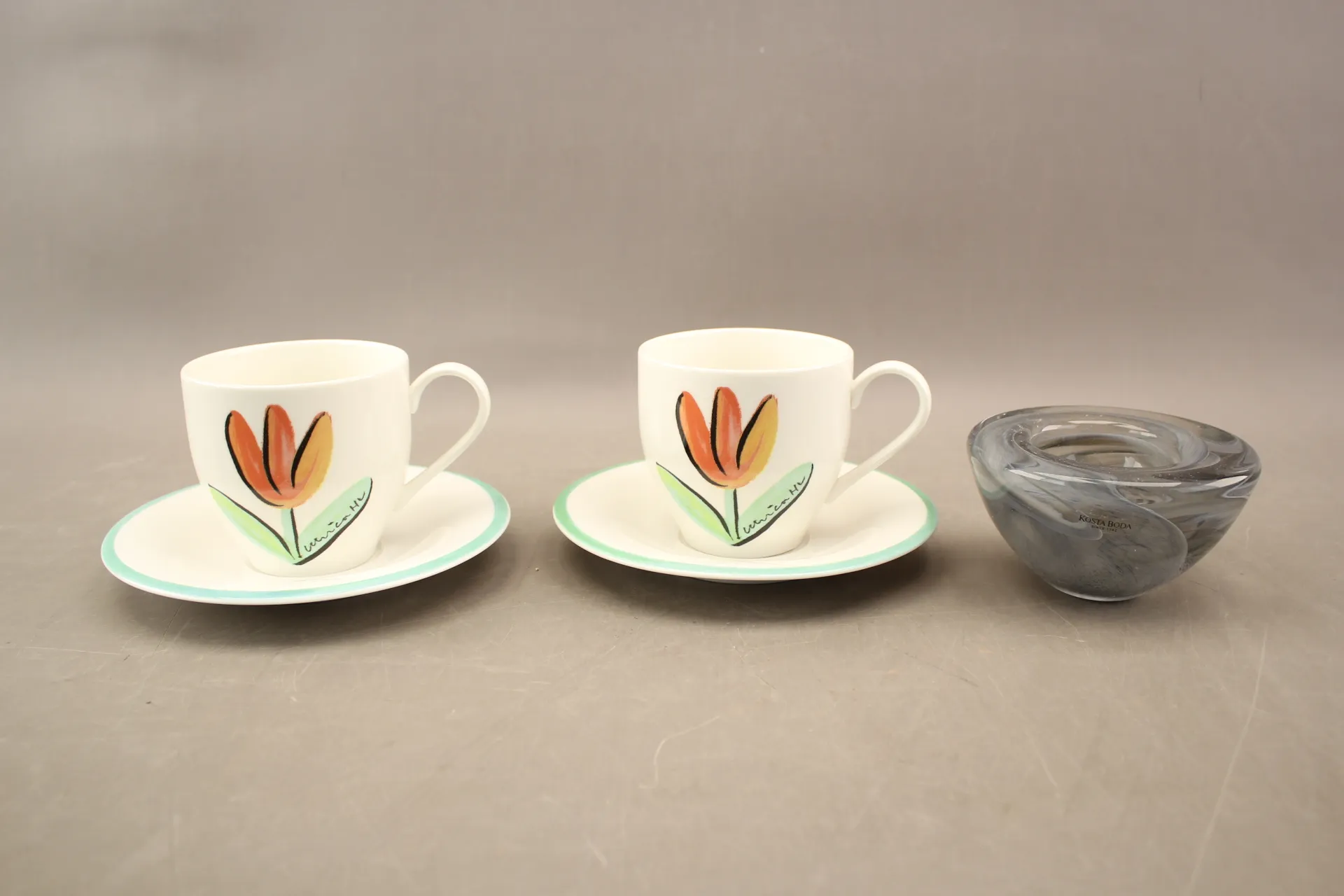149. Ljuslykta Kosta "Atoll" Anna Ehrner och koppar med fat "Tulpan" Ulrica H. Vallien 4 delar