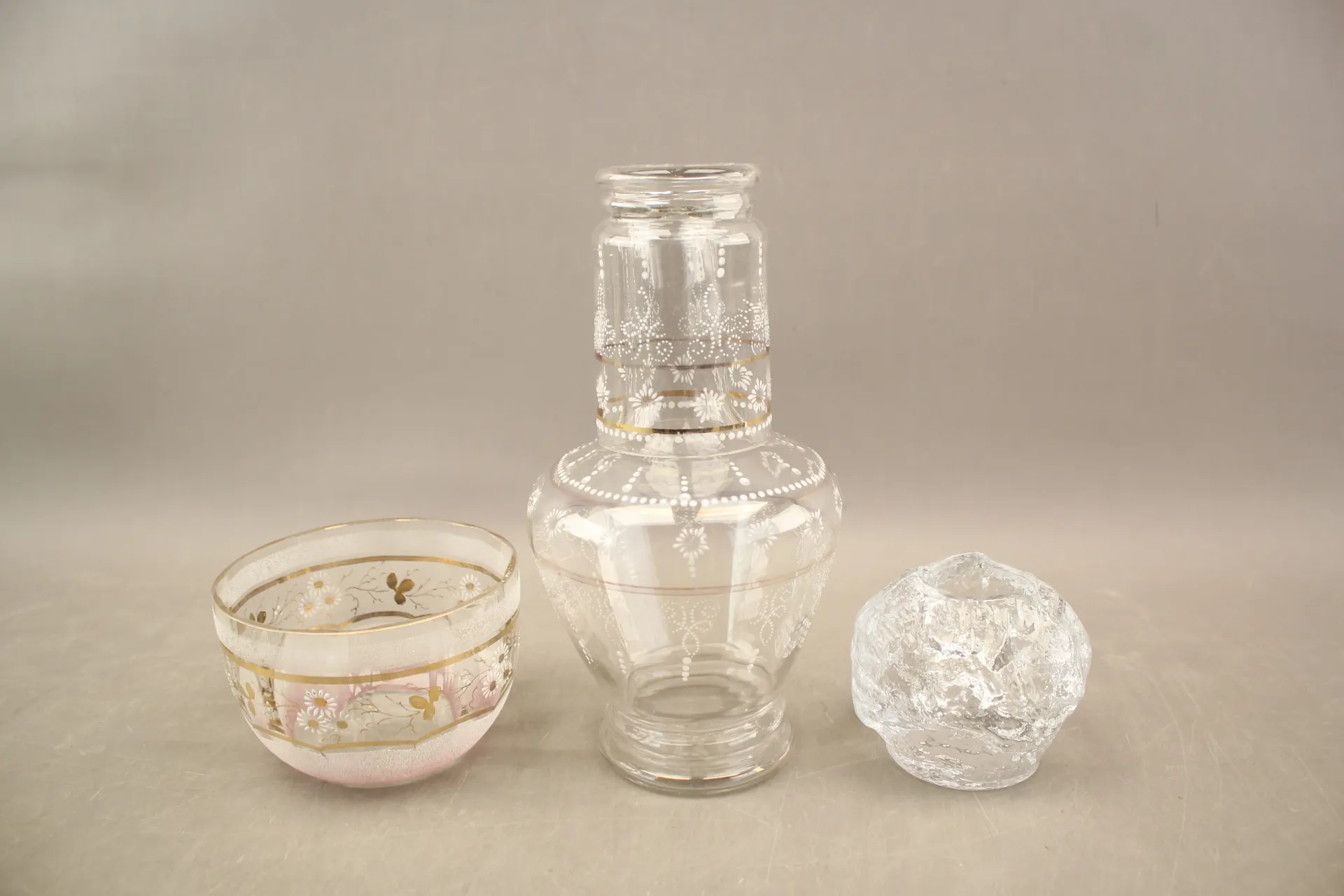 203. Ljuslykta "Snowball" Kosta Boda, nattkaraff och skål