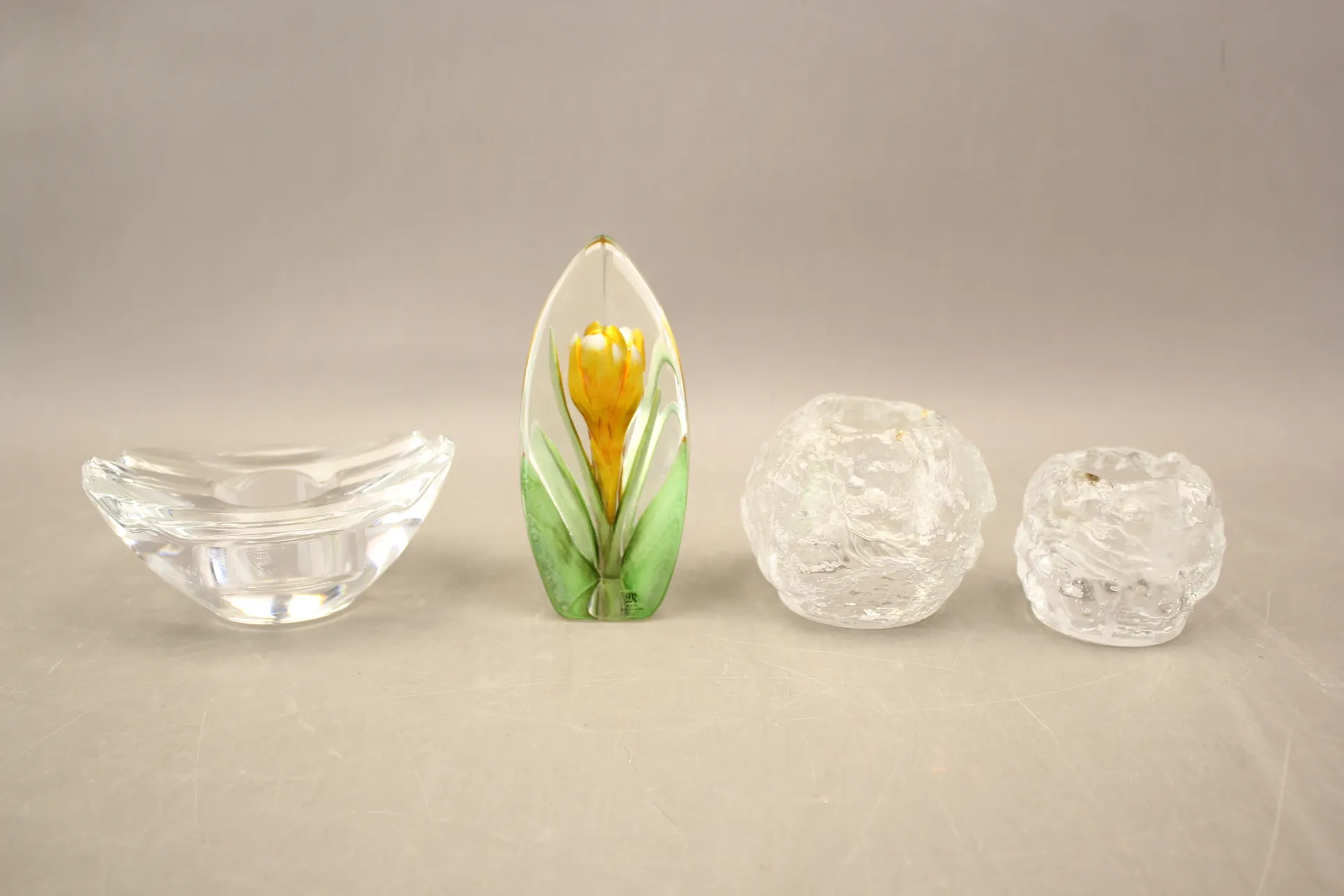 299. Ljuslyktor 3 st och glaskonst bla mats Jonasson