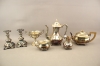 505. Ljusstakar 1 par, kannor 4 st och skål i nysilver