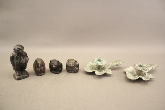 156. Ljusstakar 1 par och figuriner 4 st i metall