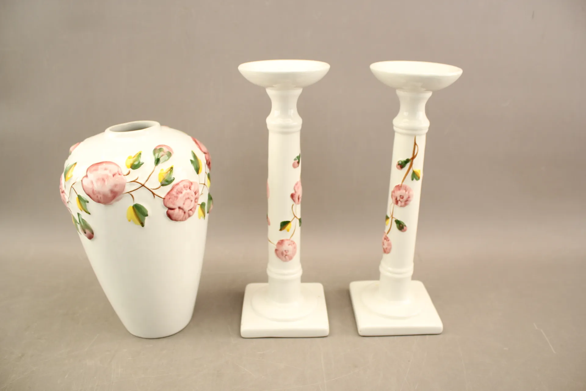 371. Ljusstakar 1 par och vas i porslin