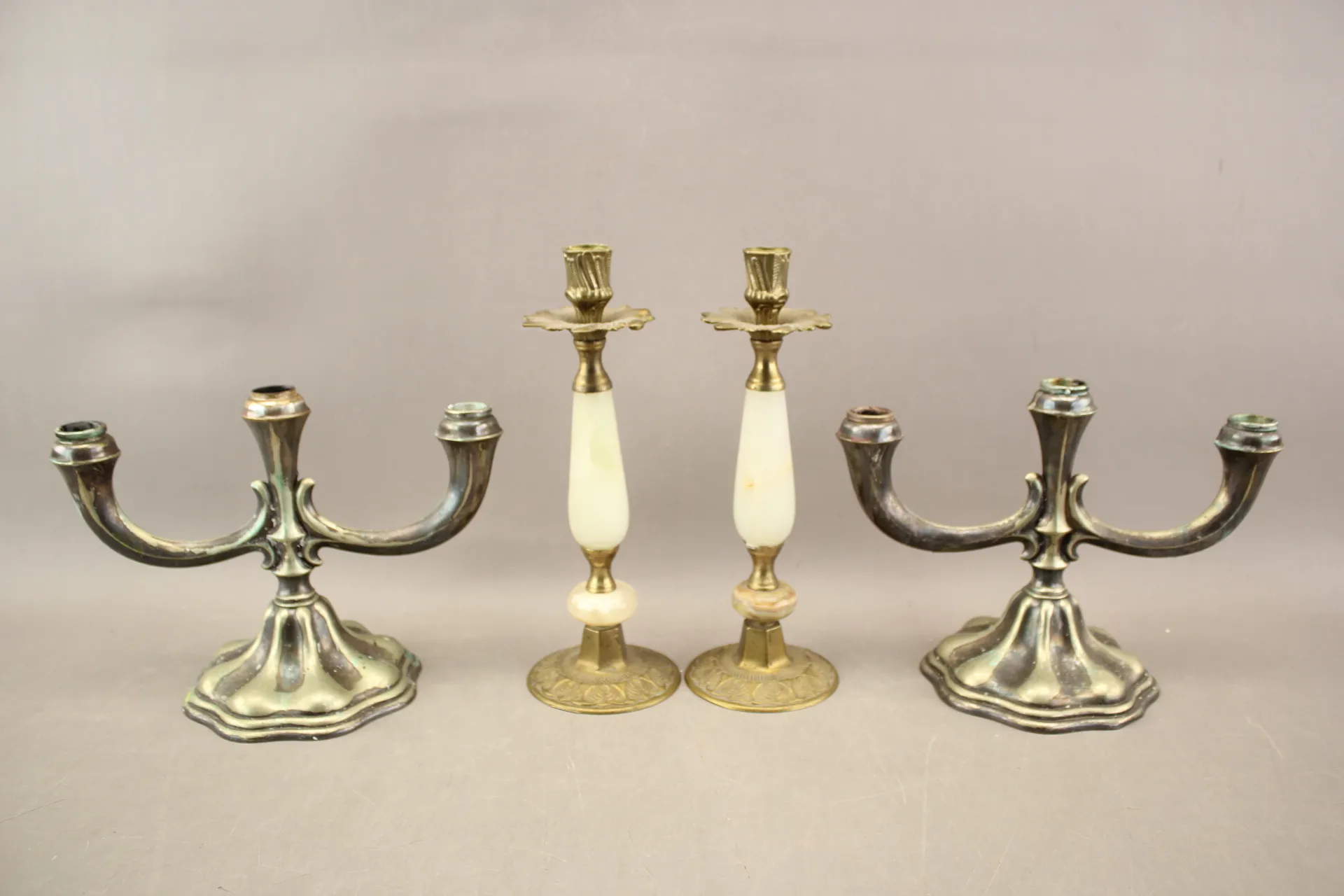 14. Ljusstakar 2 par i bla mässing och alabaster 1900-tal