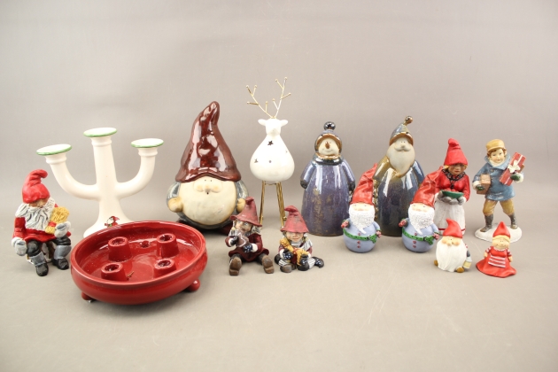 165. Ljusstakar 2 st, ljuslykta och tomtar 12 st