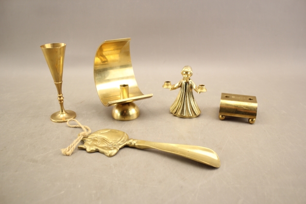 13. Ljusstakar 2 st, snapsglas mm bla Skultuna och Gusum
