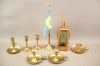 146. Ljusstakar 5 st, ljuslykta mm i bla mässing