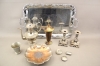 77. Ljusstakar barockmodell 1 par, bricka, skål, mm i bla nysilver