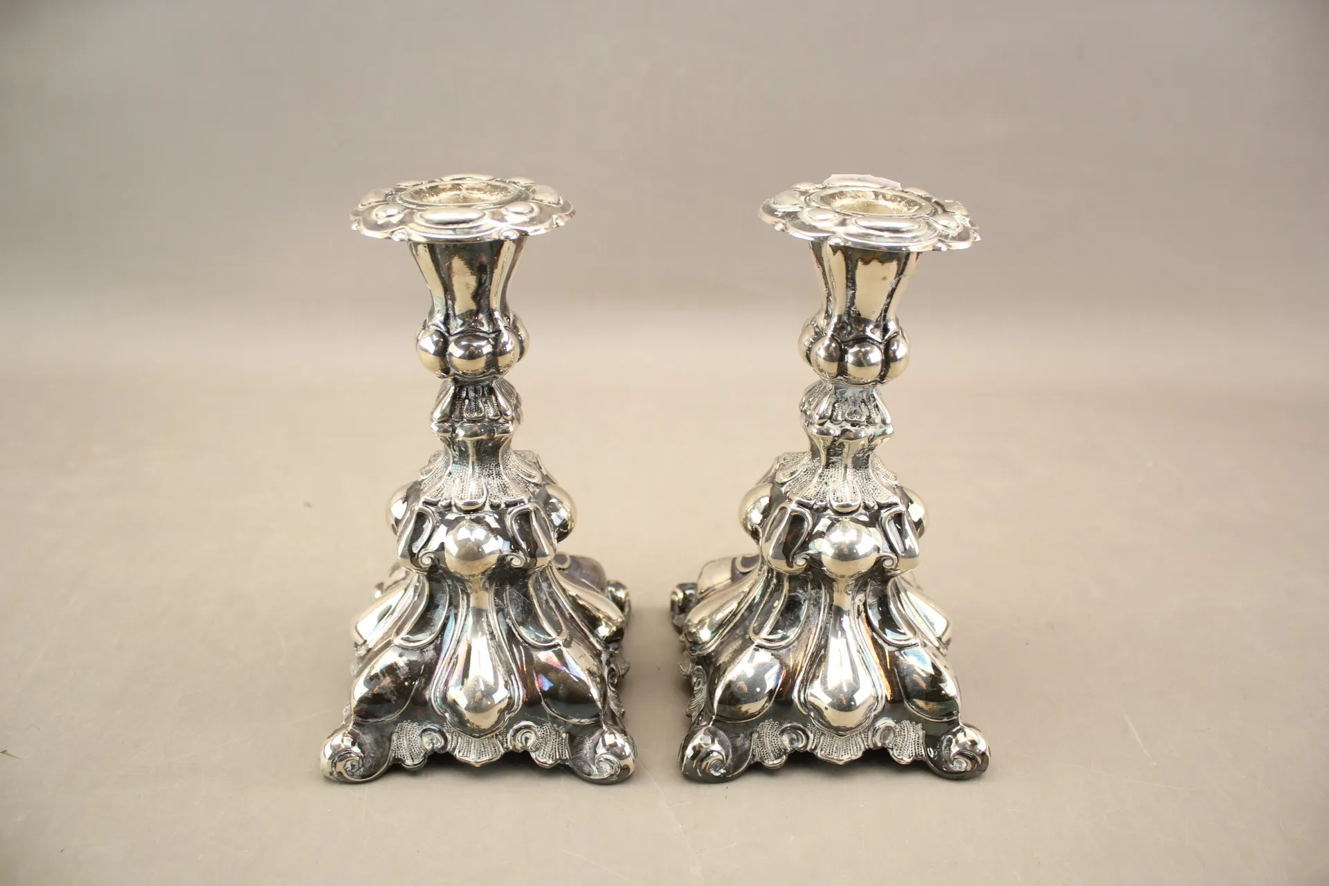 208. Ljusstakar Barockmodell i silver 1 par