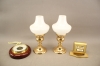 72. Ljusstakar i glas och mässing 1 par, barometer mm