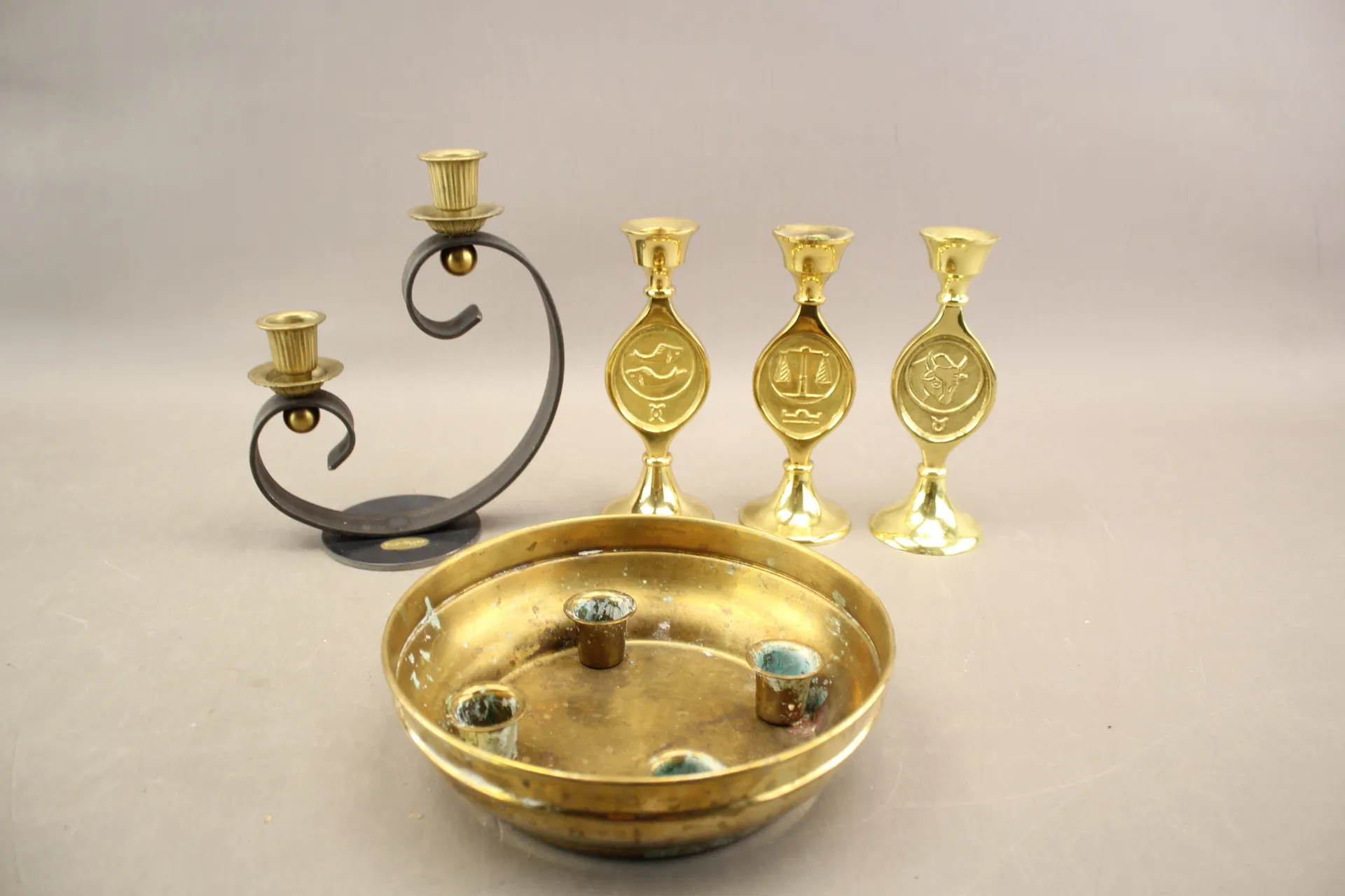 184. Ljusstakar i mässing 1900-tal 5 st bla "Two Faces"