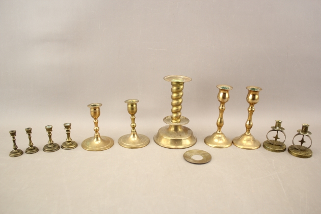 70. Ljusstakar i mässing 11 st bla Gottfrid Carlsson Eskilstuna