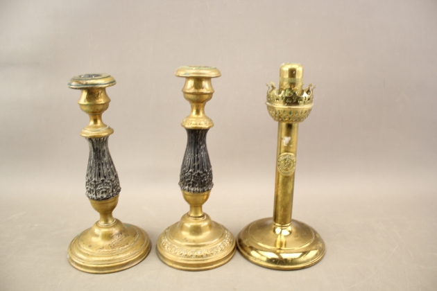 165. Ljusstakar i mässing 3 st bla "Karlskronalyktan" Karlskrona Lampfabrik