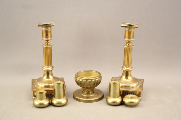 146. Ljusstakar i mässing 7 st bla "Gille" Skultuna och Gusum