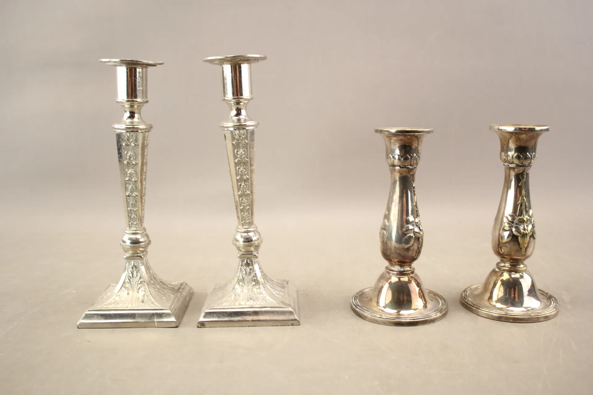 245. Ljusstakar i nysilver 1900-tal 2 par
