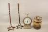 384. Ljusstakar i smide 1 par, kagge och hushållsvåg