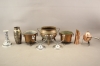 347. Ljusstakar i tenn 1 par, diverse koppar 5 delar mm