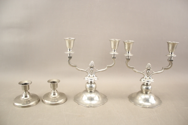 10. Ljusstakar i tenn 2 par Just Andersen och JBF