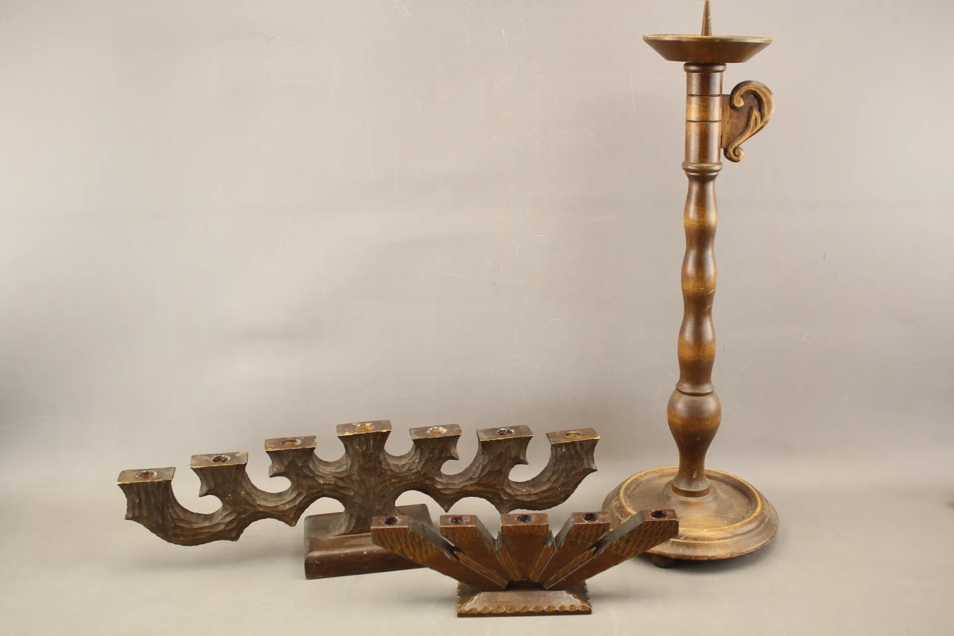 114. Ljusstakar i trä 3 st