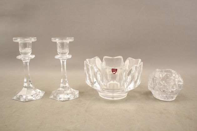 34. Ljusstakar modell 63015 1 par, skål och ljuslykta Kosta och Orrefors