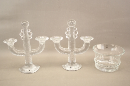 274. Ljusstakar Pukeberg 1 par och skål Skruf