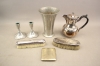 436. Ljusstakar, vas i tenn, kaffekanna, borstar, mm i nysilver