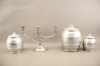 150. Ljusstake Eskilstuna och burkar med lock 3 st i tenn