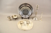 143. Ljusstake, vas, skålar, mm i bla nysilver