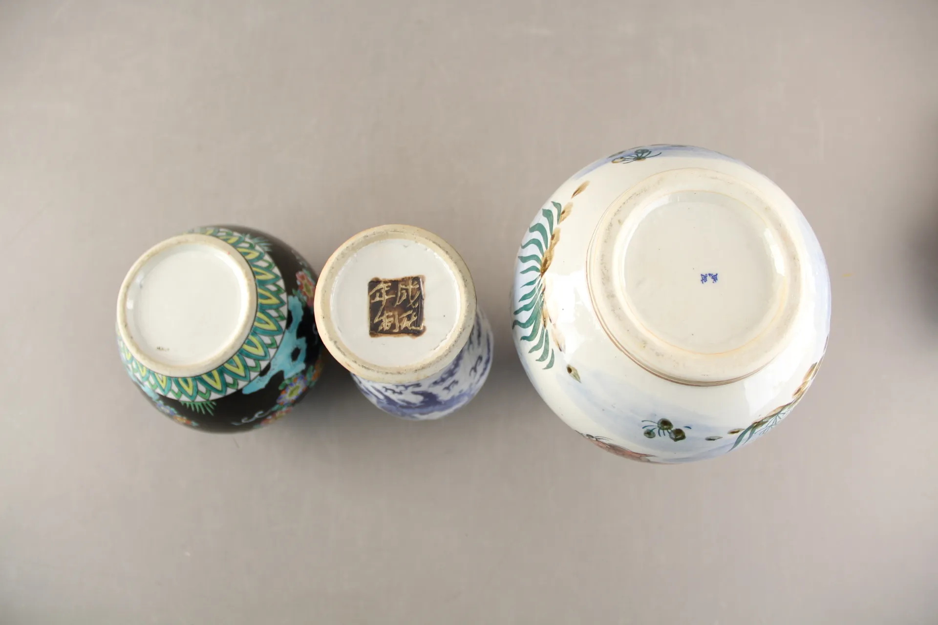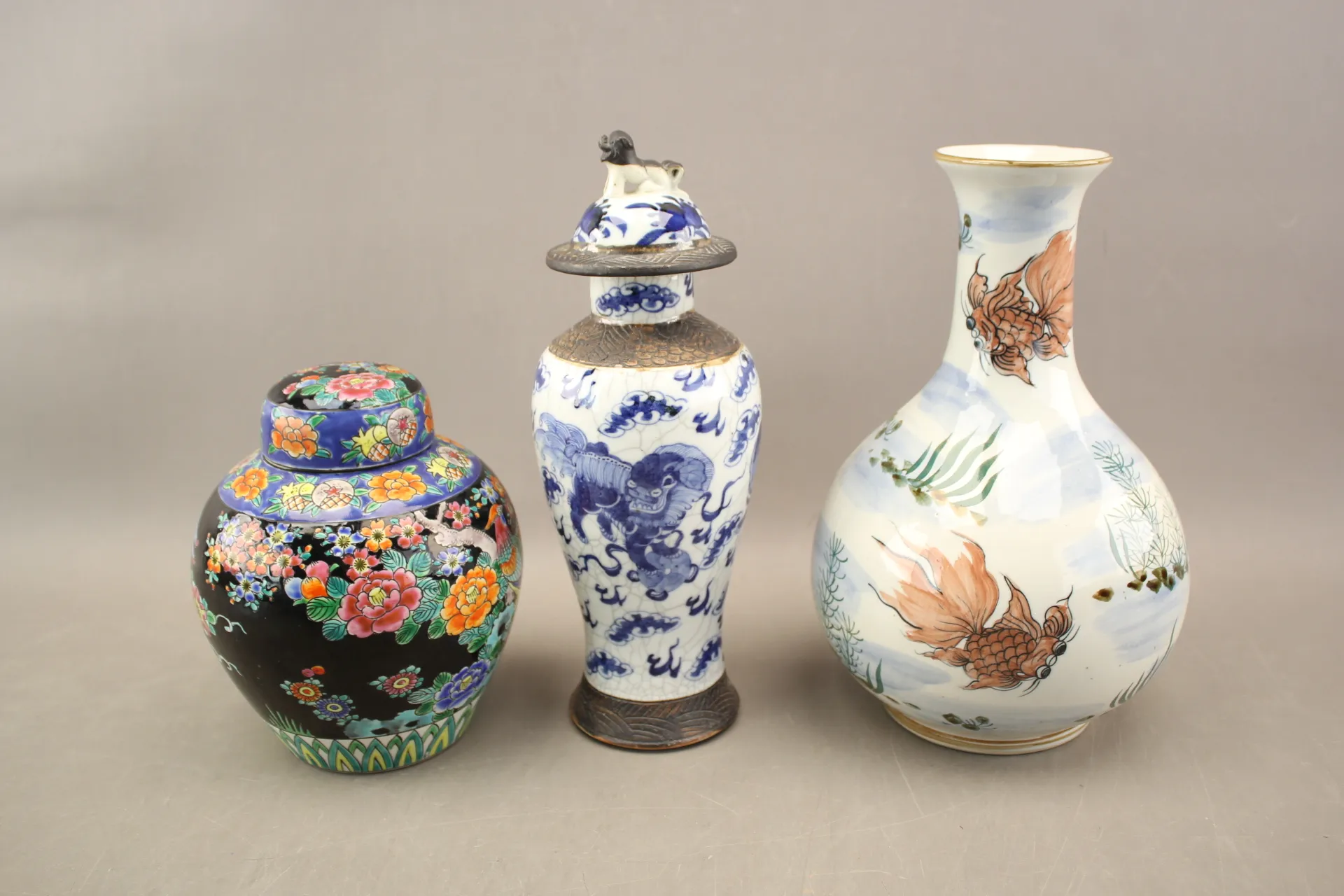 93. Lockurnor 2 st och vas med asiatiskt motiv